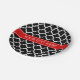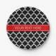 Black White Moroccan #5 Red Name Monogram Paper Plate