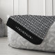 Rustic chic sherpa blanket features an intricate pattern inspired by Nordic knit sweaters, in classic black and white. Personalise with a name or family name along the bottom.