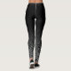Put on these black and white leggings printed with a fun, funky graphic retro pattern and you MUST move your booty. The top part is covered in black that fades away to reveal a repeating pattern of rounded squares cut away with circles inside; the pattern covers the lower part of both legs. Yoga lovers, runners, dancers, pilates fans and fashionistas alike will love these modern, trendy leggings!