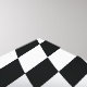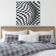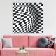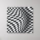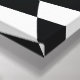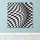 Black white op art optical illusion abstract custom wrapped canvas print, featuring a geometric B&W optical illusion chequered pattern of squares, rectangles and lozenges that looks stretched.