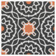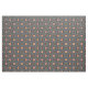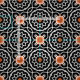 Elegant fabric design featuring a seamless pattern made of geometric shapes in white and orange on a black background.