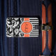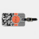 This monogrammed orange, black, and white stripes with floral damask pattern luggage tag is fully customisable and would give your luggage a chic and modern tag that would make it easy to spot at the airport. If you need help, or want something changed, email your request to niteowlstudio@gmail.com.