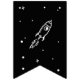 Unique, fun, modern and bold birthday astronaut space adventure birthday party bunting banner design. Black and white colour palette is used to create a simple yet bold and eye-catching birthday space celebration design theme. The black dominant colour is used to represent the deep outer space. Fun cartoon illustration sketches featuring Space rocket, space stars, meteors, shooting stars, astronaut, and space planets are incorporated into this fun bold out of this world space adventure birthday design. Customised with your own name or message.