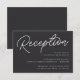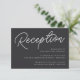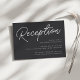 A petite wedding invitation enclosure card for your reception details, with "Reception" at the top in cursive script lettering, and your reception details aligned at the lower right. Designed to match our Black & White Oversized Script wedding collection. Our Ash colorway makes a classic statement with crisp white lettering on a soft black background.