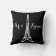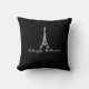 White and graphic Eiffel Tower illustration on black, personalised with name. A glamourous Paris-themed idea for a chic decoration