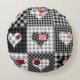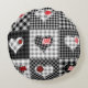 Black White Patchwork Hearts Seamless. Round Cushion