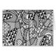 "Patterns Run Amok, 2" is a part of a series of black and white whimsical designs featuring a hand-drawn outline that's then filled in with repeating patterns. Circles, rings, squares, bulls-eye, targets, flowers and more are interspersed over the surface in an unpredictable array. This is a digital art piece that hints of the hand-drawn technique "Zentangle Inspired Art."