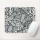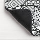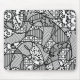 "Patterns Run Amok, 4" is the fourth in a series of black and white whimsical designs featuring a hand-drawn outline that's then filled in with repeating patterns. Circles, rings, squares, bulls-eye, targets, flowers and more are interspersed over the surface in an unpredictable array.