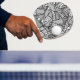 "Patterns Run Amok, 4" is the fourth in a series of black and white whimsical designs featuring a hand-drawn outline that's then filled in with repeating patterns. Circles, rings, squares, bulls-eye, targets, flowers and more are interspersed over the surface in an unpredictable array.