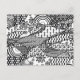 "Patterns Run Amok, 6" is a part of a series of black and white whimsical designs featuring an outline drawn in black with a Wacom digital tablet. The outline's open sections are filled in with patterns. Circles, rings, squares, waves, zig zags, flowers and several retro pattern shapes are interspersed over the surface in an unpredictable array. When I'm not creating digital art, sometimes I use ink and paper for Zentangle drawings. Though this design is definitely not Zentangle, it may be considered a distant cousin of "Zentangle Inspired Art" because, like that art form, the work is achieved by drawing an outline ("string") and filling in the open spaces with repeating patterns. This digital version isn't as loose and organic as hand-drawing patterns, but I still find it fun to enjoy the repeating patterns bumped up against each other in unexpected ways. What great fun I had creating it, and I hope you'll enjoy it as well!