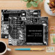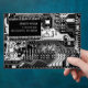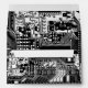 Detailed photograph of a pcb board, perfect for electronic enthusiasts. Printed circuit's main colours : Black and white.