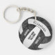 This black and white custom team colours volleyball keychain features the realistic image of a volleyball that has a floral kaleidoscopic pattern blended with its black panels - her name, court position, team name and school / club year are customisable on the front, as is her jersey number on the back overlying a minimalist volleyball graphic - by katz_d_zynes