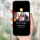 A black background. Personalise and add your company, business logo, a photo, text, room number. White text.