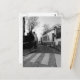 Postcard featuring black and white photography of a cobbled street in Montmarte, Paris.