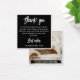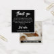 Thank you for your purchase package insert in black with white fonts and a white border. Thank you and best wishes in a charming script. Add your discount code on the other side along with a promo picture.