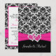 Black White Pink Damask Hearts Wedding Invitation
