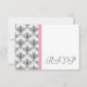 Black White PInk Damask Wedding RSVP Reply Cards