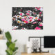 Black White Pink Flower Garden Monochrome Poster