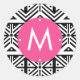 Black White Pink Geometric Tribal Pattern Monogram Classic Round Sticker