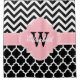Two Patterns: White Moroccan Quatrefoil Trellis Pattern #5 and Large Chevron Zigzag with Initial + Name Monogram on Pink Quatrefoil with Ribbon