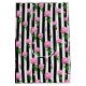 Black And White stripes With pink rose Flower stalk retro vintage inspired pattern design