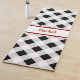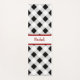 Personalise your yoga mat, with your name (or any other text). Modern look with a minimalist black & white plaid. Custom text is crimson red.