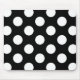 Graphic design of white polka dots on a black background.