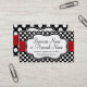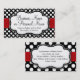 Stylish and posh black and white polka dot background design, with red ribbon and white frame shape. Business Name and tagline on front with contact info on back. A cute high contrast graphic style that catches the eye. All Designs Copyright © www.CustomInvitesOnline.com