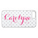 Stylish iPhone case featuring black and white polka dots pattern and hot pink modern calligraphy. This customisable electronics case will be perfect as a gift.