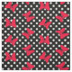 black & white polka dots with big red cartoon bows fabric print