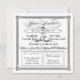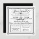 This black and white square wedding invitation has a vintage, old fashioned feel with old-timey letter design, including elaborate script elements, a decorative banner, stars and a swirly ampersand. The fancy invitation is inspired by both vintage design and stylish posters. The text reads: "You're Invited to the wedding of [customisable name] & [customisable name] [customisable date] [customisable time]. Please Join Us for an Unforgettable Celebration". Further personalise the invitation with the wedding ceremony and reception information and address, each in their own box with dotted border.