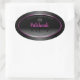 Make a lasting impression with this elegant and modern product label design featuring a black and white colour gradient with a luminous shimmery pink purple decor frame. Matching an outstanding font with shadow effect.