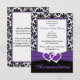 Set the tone for your love filled wedding with this chic and modern black and white damask wedding accommodations enclosure card with a purple PRINTED ribbon with a pair of FAUX (PRINTED) glitter joined diamond jewels hearts on it that matches the wedding invitation shown below. All text and the type of paper is customisable. ***PLEASE NOTE that there are no raised elements on this design. Everything is printed flat.***PLEASE NOTE that if you change the font or size of the font, it may alter how your invitation prints. It will print the way you see it on your screen, so if you have alignment issues, or sizing problems, please contact me for help. I will not see your invitation once you order it, and Zazzle will NOT edit anything (typos, alignment, etc.). If you require assistance or would like any other matching items, please email your request to niteowlstudio@gmail.com.