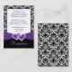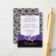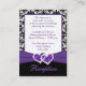 This black and white damask reception enclosure card has a PRINTED purple ribbon with a pair of PRINTED joined diamond jewel hearts with purple glitter on it that matches the wedding invitation shown below. If there are any other matching items you require, please email niteowlstudio@gmail.com.