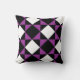 Black White Purple Modern Big Diamond Pattern Pillow. Large black and white diamond shapes are featured inside black and purple squares to form a concentric, geometric check pattern. A modern decorative accent design. CUSTOMIZE: To change the purple to another colour, just click on the Customise, Edit and select Background, click done at the bottom of the colours. Stylish, and contemporary.