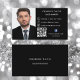 A classic business card on a black background. Personalise and add Your name, text, profile photo, contact info and your own QR code to your website address or social media account. Facebook icon.