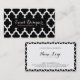Elegant black and white modern geometric quatrefoil ikat seamless pattern. Fully customisable double sided event designer business card template.