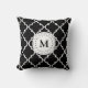Black White Quatrefoil Pattern Monogrammed Pillow
