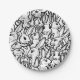 Black & White Rabbit Drawing Modern Bunny Pattern Paper Plate