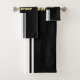 Black White Racing Stripes Faux Gold Monogrammed Bath Towel Set