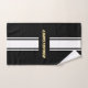 Create your own custom, personalised, cool, classy, stylish, classic, black and white racing stripes design, faux gold typography / script monogram, trendy, machine washable, bath towel set that includes 30" x 60" bath towel, 16" x 28" hand towel and 13" x 13" washcloth. To customise, simply type in your name / monogram / initials / family name. Makes a great custom gift for birthday, fathers day, mothers day, wedding, graduation, christmas, holidays, new years, and more, for your loved ones, kids, grandkids, mum, dad, grandpa, grandma, brother, sister, son, daughter, uncle, aunt, husband, wife, bride, groom, friends and family.