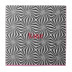 Black and white pattern of spiralling radiating 4-point stars., customise with your own greeting, name, message, etc