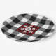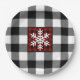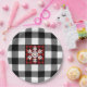 Black, White, Red Buffalo Plaid, Snowflake Paper Plate