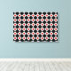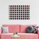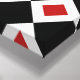 A stylish graphic pattern of interlocking black and white diamond shapes. Each white diamond contains a small red diamond adding depth to the original design.