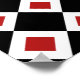 A stylish graphic pattern of interlocking black and white diamond shapes. Each white diamond contains a small red diamond adding depth to the original design.