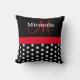 Black White Red Monogram Script Polka Dots Cushion