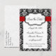 Black/White/Red Ribbon Damask Save the Date Announcement Postcard