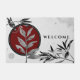 Black White & Red Watercolor Leaves Welcome Doormat