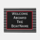 Perfectly chic, and classic black and white with bright red detail Welcome Aboard The _________ doormat for your boat of marina slip customisable with your boats name