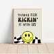 So ditch the boring old food signs and let these groovy grins guide your guests to their happy place. Order your "black and white thanks for kickin' it with us food sign" today and get ready to throw a baby shower that's outta sight!